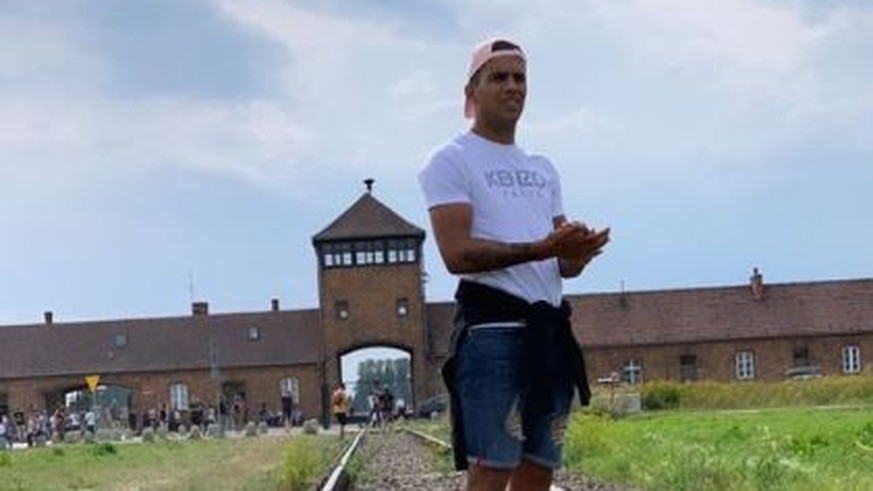 A uruguayan football star has sparked outrage after wishing himself a happy birthday with a photo from auschwitz.